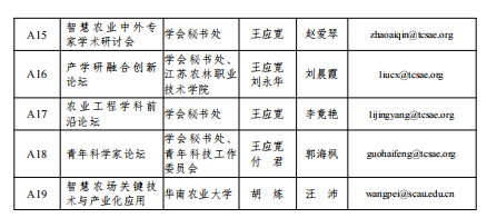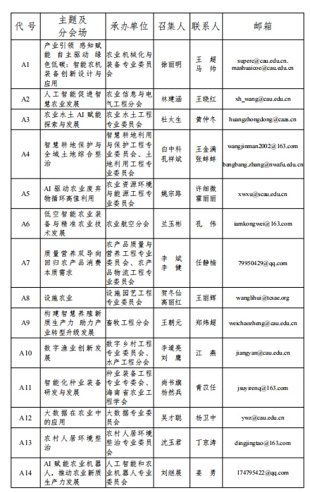年会分会场学术研讨围绕大会主题,涵盖农业工程相关领域,征稿代号A1~A19,请在投稿时选择合适的主题。
