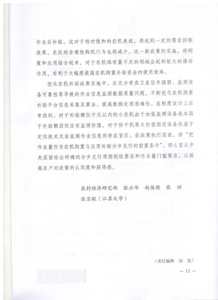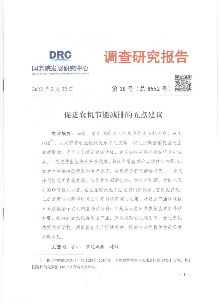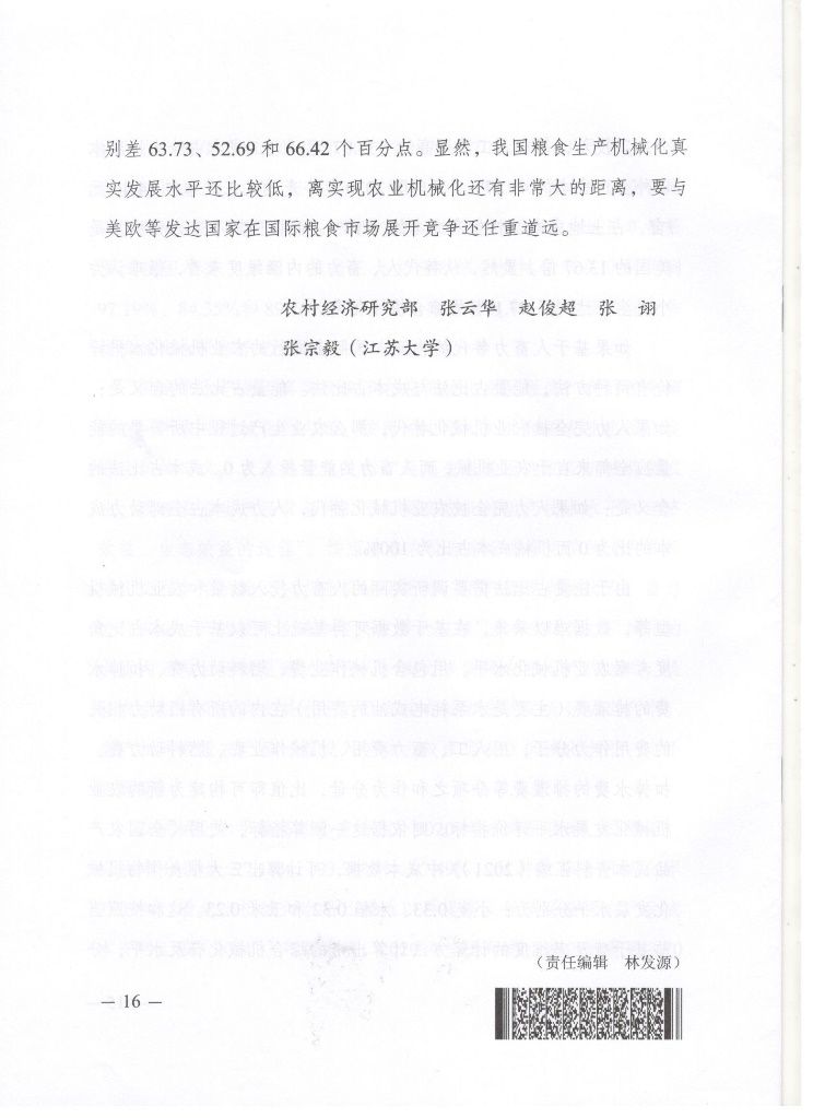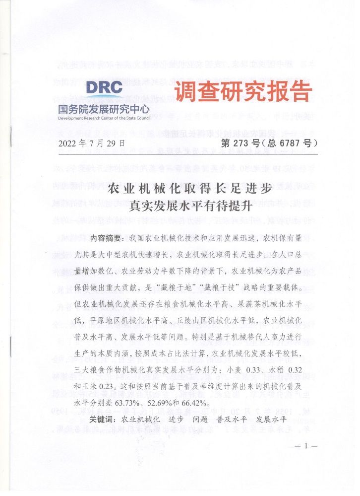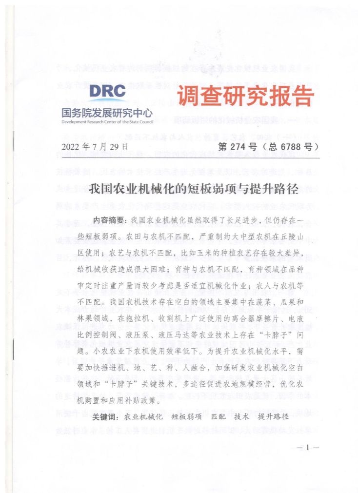 今年以来,张宗毅教授撰写的“促进农机节能减排的五点建议”、“我国农业机械化的短板弱项与提升路径”、“农业机械化取得长足进步,真实发展水平有待提升”等多篇文章,在国务院发展研究中心内刊《调查研究报告》发表,该内刊为党和国家决策参考资料之一。