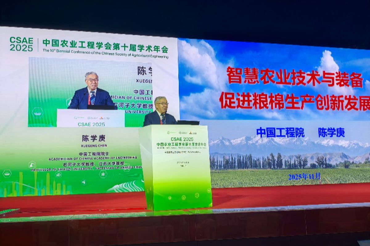 会议期间,陈学庚院士以《智慧农业技术与装备促进粮棉生产创新发展》为题作大会主题报告。杂志社社长徐云峰主持“优秀农林期刊高质量发展研讨会与风采展”分会场,农业工程学院院长贾卫东、梦溪学院院长李伟等师生作分会场专题报告,就我校农业装备人才培养、农业机械化与装备工程、农产品、农业水土工程、期刊高质量发展等作汇报,提升了我校在农业工程领域的行业影响力。