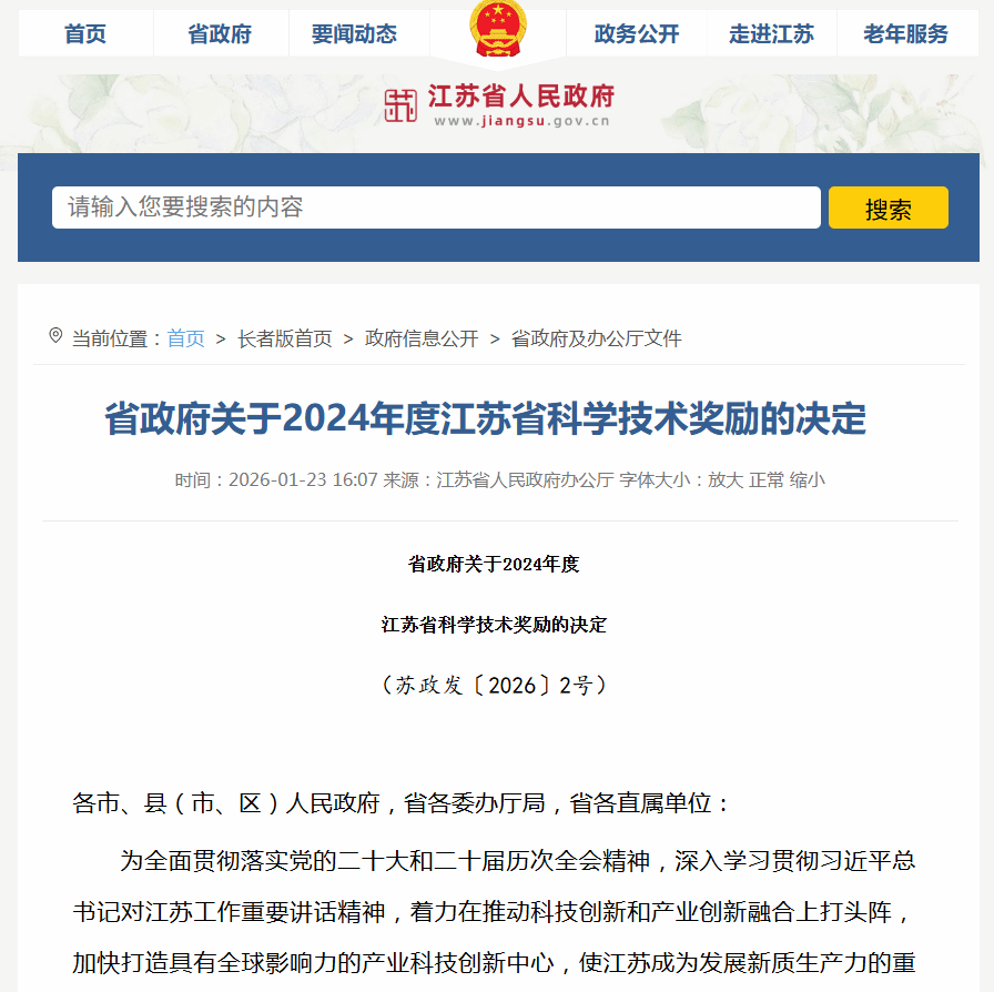 近日,江苏省人民政府网站发布《省政府关于2024年度江苏省科学技术奖励的决定》,对为江苏省科学技术进步、经济社会发展作出突出贡献的科技人员和组织予以奖励,学部执行主任徐立章教授主持完成的“谷物机收减损智能化关键技术研发与装备应用”荣获一等奖(为江苏大学首次获得农机领域江苏省一等奖)。