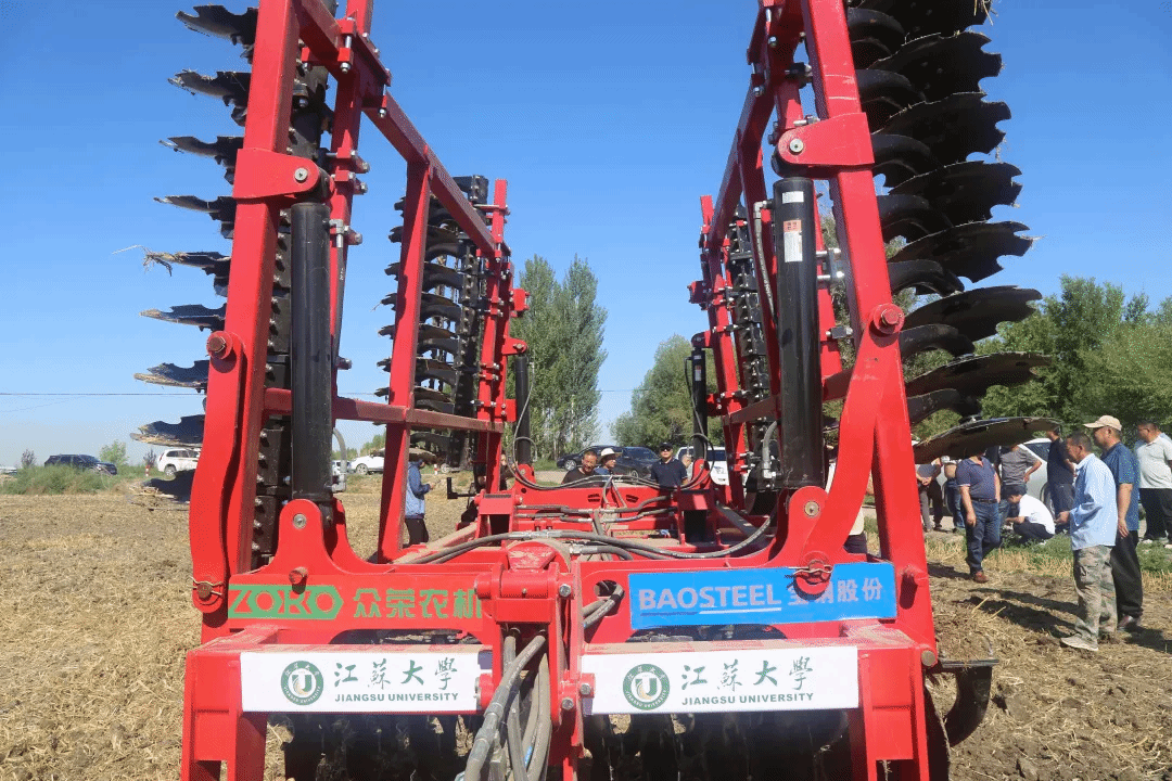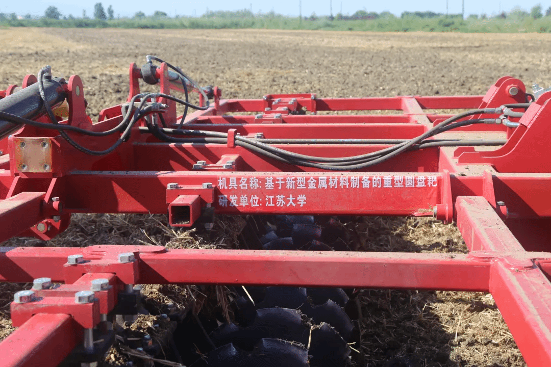 “轰-隆-隆”在二二二团四连四支六斗二的108亩收获完的小麦地里,一台大马力带动着重型圆盘耙进行展示作业,所过之处,身后的麦茬地被轻松灭茬和浅耕。7月23日,江苏大学新型重型圆盘耙新机首发活动在二二二团开展。该机械由江苏大学材料科学与工程学院联合宝钢股份中央研究院(后文简称宝钢)和众荣农机研发并制造。